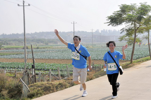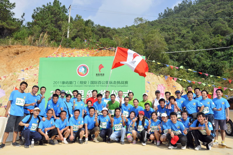 11月5日8時(shí)09分,明媚秋光里,廈門市委常委、副市長(zhǎng)臧杰斌宣布2011象嶼廈門(翔安)國際百公里縱走挑戰(zhàn)賽開始,廈門市人大常委會(huì)副主任黃杰成、廈門市政協(xié)副主席陳昌生、國家奧林匹克體育中心副主任彭維勇、象嶼集團(tuán)總裁張水利等一起為比賽鳴槍。來自28個(gè)國家和地區(qū)的近萬名運(yùn)動(dòng)愛好者,從大嶝小鎮(zhèn)·臺(tái)灣免稅公園廣場(chǎng)出發(fā),穿越田野、海濱、山巒、閩南古厝,開始了一段挑戰(zhàn)自我的征途。這其中,由象嶼集團(tuán)員工及家屬、合作伙伴、共建單位等組成的千人象嶼團(tuán)隊(duì)分外引人注目,浩浩蕩蕩的象嶼人走在一起、樂在一起,在欣賞沿途自然、人文風(fēng)光的同時(shí),也享受著挑戰(zhàn)自我、永不止步的健康向上,享受著與同事、親朋共度美好秋假的怡然歡樂。