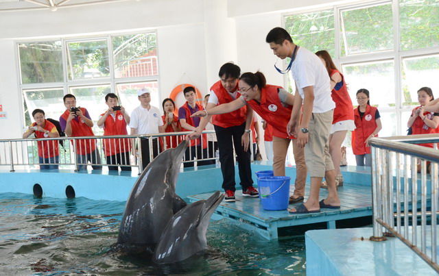 活動(dòng)中,志愿者們都很激動(dòng),紛紛拿出手機(jī)和心愛(ài)的海豚拍照合影,大家通過(guò)喂食和撫觸,與海豚親密互動(dòng),真真切切地體會(huì)到人與海洋生活和諧共處的那種愉悅和幸福。隨后在科普館內(nèi),海洋漁業(yè)局的講解員為志愿者們?cè)敿?xì)介紹了關(guān)于中華白海豚和海洋保護(hù)的相關(guān)知識(shí),志愿者們認(rèn)真傾聽(tīng),踴躍提問(wèn),與講解員展開(kāi)了熱烈的互動(dòng),收獲良多。
