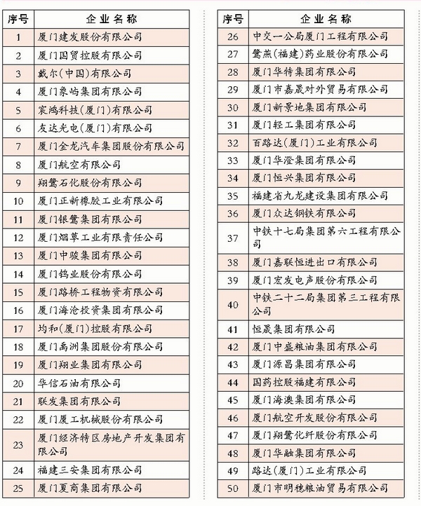 廈門(mén)日?qǐng)?bào)《廈企一百?gòu)?qiáng)排行榜揭曉 私營(yíng)企業(yè)占據(jù)半壁江山》