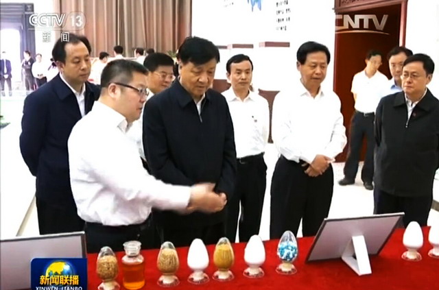 在糧食生產(chǎn)收購倉儲(chǔ)區(qū),就劉云山關(guān)心的倉容規(guī)模、倉庫類型、糧食品種、千噸囤的材料和保糧效果等,陳方一一向劉云山進(jìn)行了匯報(bào)。他說該項(xiàng)目園區(qū)倉容規(guī)模為500萬噸,有835個(gè)千噸囤及108棟平板倉,服務(wù)周邊半徑150公里約8萬戶農(nóng)民,很好地解決了農(nóng)民 “賣糧難”問題,該項(xiàng)目規(guī)模據(jù)考量為世界最大單體糧庫,正在申請吉尼斯世界紀(jì)錄。倉庫現(xiàn)儲(chǔ)糧346.5萬噸,其中140多萬噸水稻,200多萬噸玉米;千噸囤外部是鋼結(jié)構(gòu),內(nèi)部用葦徑制作,不會(huì)變形,防水防潮保糧效果好。在象嶼生化玉米深加工產(chǎn)業(yè)區(qū),各生產(chǎn)車間已建成,設(shè)備也已安裝到位,配套的自備熱電聯(lián)產(chǎn)區(qū)高大的煙筒徐徐冒出縷縷白煙。劉云山很認(rèn)真地詢問熱電廠建設(shè)手續(xù)是否已辦理,電廠的規(guī)模是否夠用?陳方回答說“發(fā)電廠的建設(shè)完全按照國家相關(guān)規(guī)定報(bào)批,手續(xù)齊全,2臺(tái)150噸的鍋爐可提供3萬千瓦時(shí)的用電,能夠保證項(xiàng)目的正常使用。”當(dāng)劉云山聽到陳方介紹說該項(xiàng)目一期60萬噸玉米深加工項(xiàng)目按照常規(guī)建設(shè),工期需要18個(gè)月才能完成,而象嶼以超常規(guī)的速度僅僅用了不到9個(gè)月的時(shí)間便實(shí)現(xiàn)了在本月下旬試車投產(chǎn)的目標(biāo)。他很開心地連稱“好、好!”并詢問:玉米深加工的產(chǎn)品都有什么?陳方告訴劉云山說:“主要產(chǎn)品包括有淀粉、淀粉糖、酒精、發(fā)酵產(chǎn)品、變性淀粉等五大品種。項(xiàng)目全部達(dá)產(chǎn)后預(yù)計(jì)可實(shí)現(xiàn)年產(chǎn)值 60億元,利稅6億元,安置就業(yè)2000人。”聽罷,劉云山又是連聲稱好。