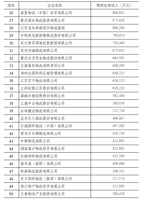 該榜單由中國物流與采購聯(lián)合會組織開展,按照物流企業(yè)物流業(yè)務(wù)收入統(tǒng)計調(diào)查數(shù)據(jù)排名,客觀反映物流企業(yè)發(fā)展成果。據(jù)悉,2017年50強(qiáng)物流企業(yè)物流業(yè)務(wù)收入共達(dá)10477億元,按可比口徑計算,同比增長26.1%。