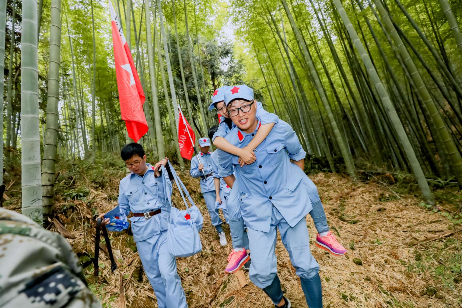 一路上,有的隊(duì)員見伙伴體力不支,便主動(dòng)背起隊(duì)友在泥濘的小路上前行;還有些隊(duì)員為了振奮士氣、活躍氣氛,不停地奔波于隊(duì)伍的兩頭,鼓勵(lì)落后的隊(duì)員,唱起紅歌、踏著拍子,帶領(lǐng)隊(duì)員昂揚(yáng)前行。最終,全員均在規(guī)定時(shí)間內(nèi)挑戰(zhàn)成功,一個(gè)都不少!