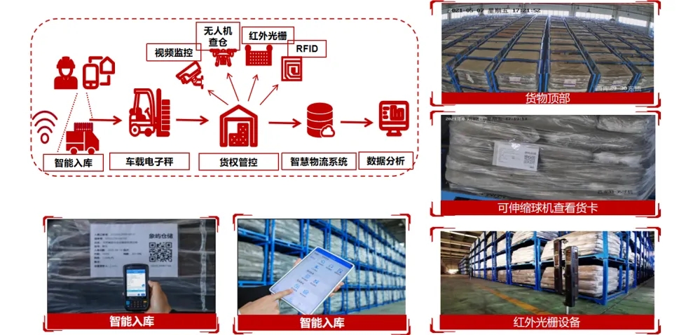 在倉庫進場、稱重、收費、存儲等環(huán)節(jié),努力推動完全無紙化操作,操作人員只需利用手持移動設(shè)備掃碼進行數(shù)據(jù)錄入,實現(xiàn)智能入庫、盤貨、出庫等動作。倉庫同步應用視頻監(jiān)控識別、紅外光柵、云端等技術(shù),客戶可通過移動終端就能進行實時查詢或歷史查詢,讓貨權(quán)看得住、管得住。